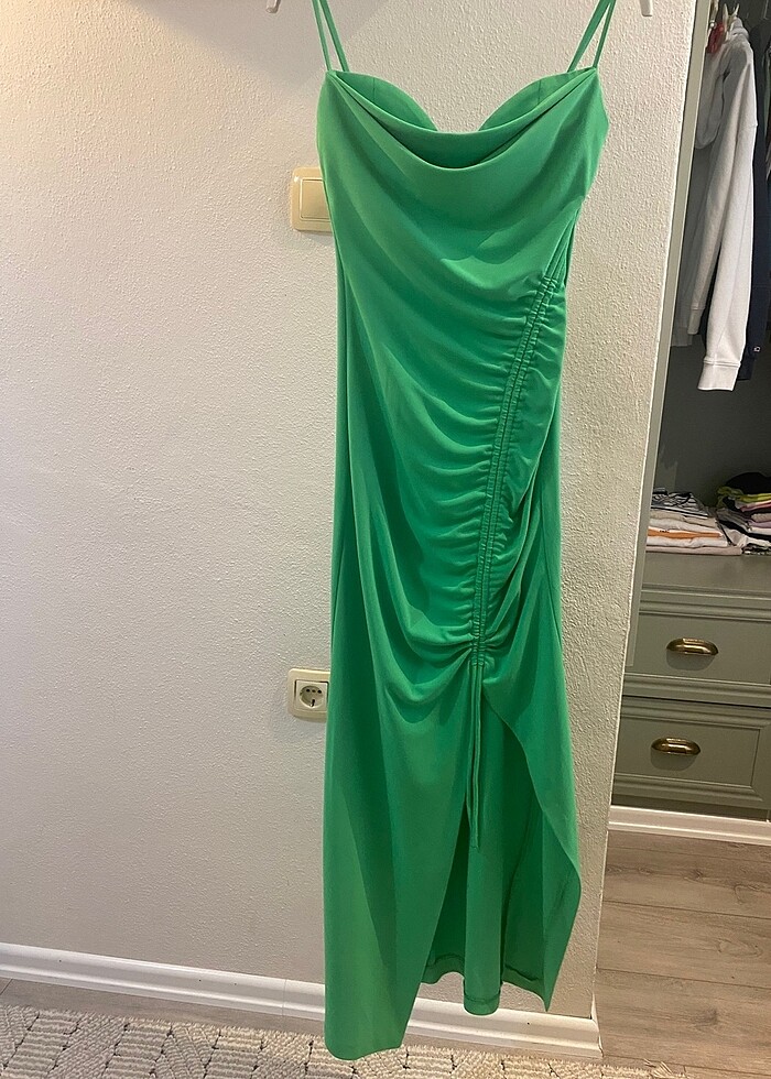 Bir düğün için almıştım bir problemi yoktur önden yırtmacı mecbut midi boydur biraz dar sıkı bir elbise tam xs bedene göre