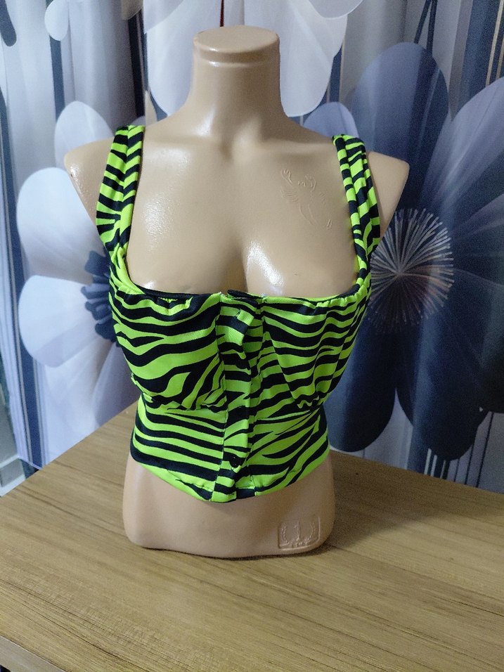 Yeşil Zebra Desenli Mini Büstiyer