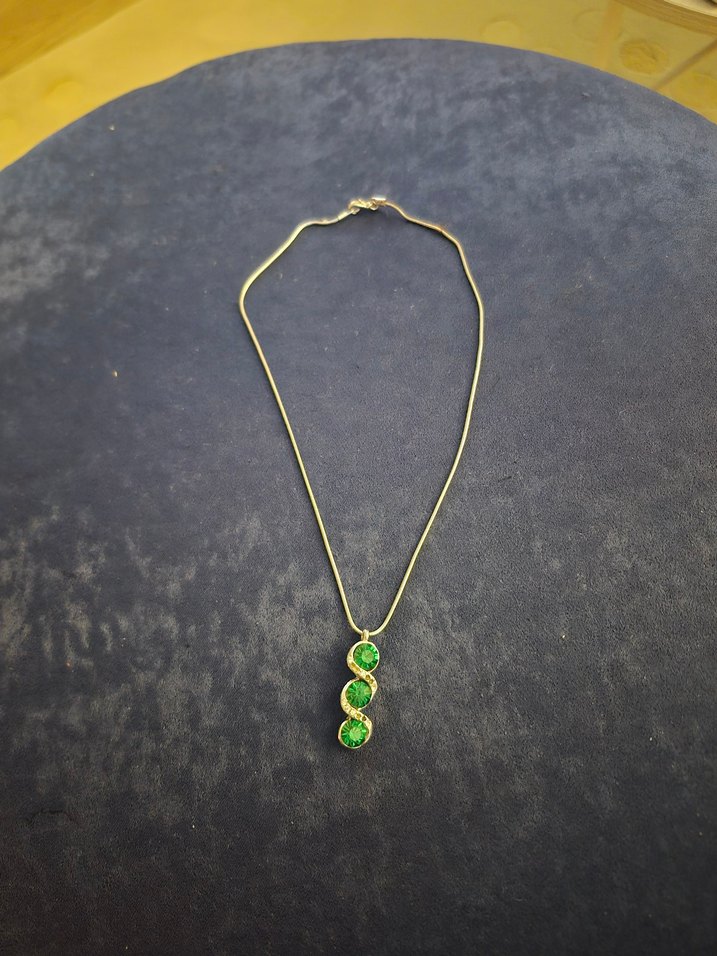 Yeşil Zümrüt Desenli Zincir Kolye