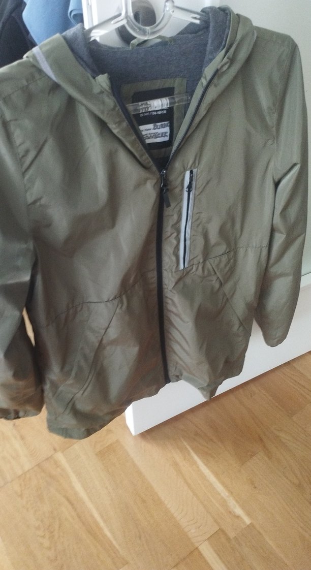 Yeşil renkli erkek yağmurluğu, fermuarlı ön cep ile tasarlanmıştır. Sentetik kumaştan yapılmış, rahat kesim ve uzun kolludur.