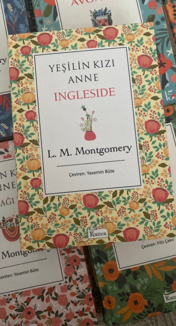 L. M. Montgomery'nin "Yeşilin Kızı Anne Ingleside" kitabı, Yasemin Büte çevirisiyle Koridor yayınevi tarafından basılmıştır. Çiçek desenli kapak tasarımı dikkat çekiyor. Ürün sıfırdır