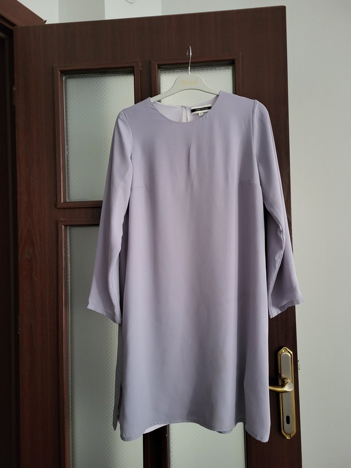 Gri renkte, satenimsi kumaştan, uzun kollu, salaş kesim ve drapeli detaylı midi tunik. Minimalist ve desensiz tasarıma sahiptir. Kaliteli marka çift kat içi beyaz dışı gri
