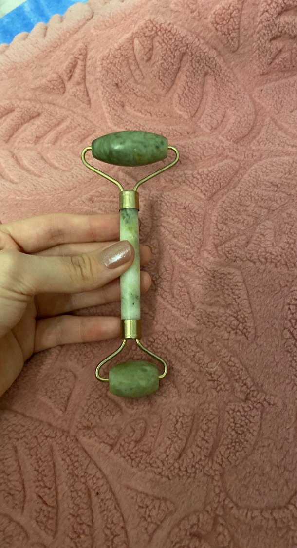 Bu yeşim taşı yüz masaj aleti, cildi nazikçe masaj yaparak kan dolaşımını artıran iki pürüzsüz ruloya sahiptir. Doğal taş, ferahlatıcı bir soğutma etkisi sunar. Hiç kullanılmamıştır