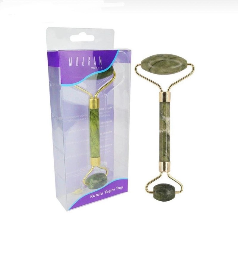 Mujgan markasına ait, farklı boyutlarda iki yeşim taşıyla yüz masajı yapmayı sağlayan masaj aleti. Kan dolaşımını artırır ve cildi rahatlatır.