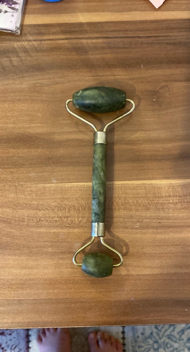 Yeşim taşından yapılmış, cilde nazik masaj sağlayan iki uçlu yüz masaj aleti. Kan dolaşımını artırmaya yardımcıdır. ♀️