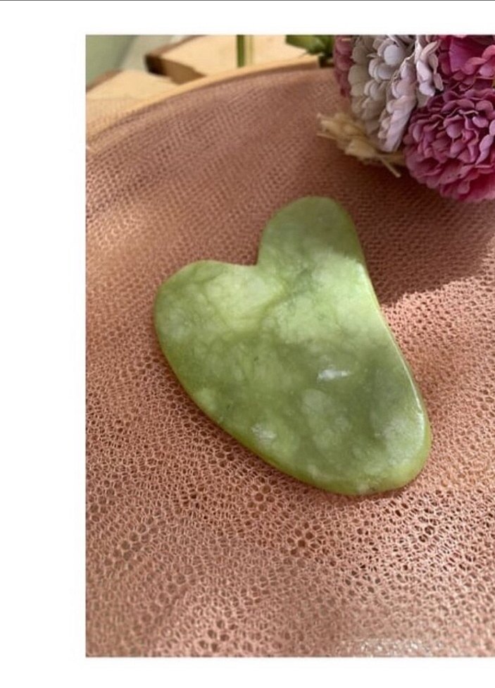 Yüz hatlarına uyumlu, cilt dolaşımını artıran yeşim taşı masaj aracı. Pürüzsüz yüzeyi ile rahatlatıcı etki sağlar.