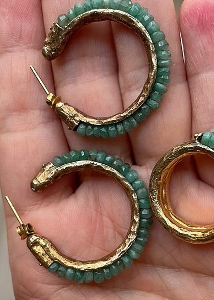 Zümrüt taşlı gümüş tasarım küpe yüzük seti