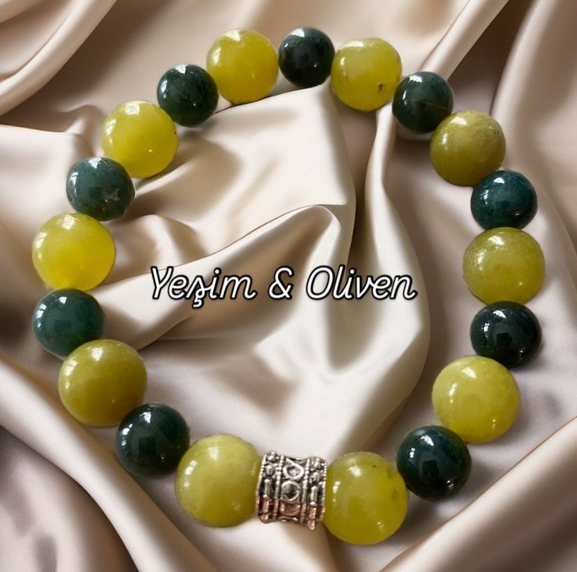 Yeşim ve Oliven doğal taş Kadın Bileklik
