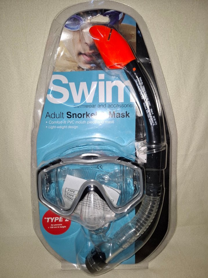 YURT DIŞINDAN ALINDI. Yetişkinler için şnorkel maskesi, rahat PVC ağızlığı ve hafif tasarımıyla plajda kullanıma uygundur. Mavi baskılı maskesi ve turuncu uçlu şnorkeli bulunur. ️