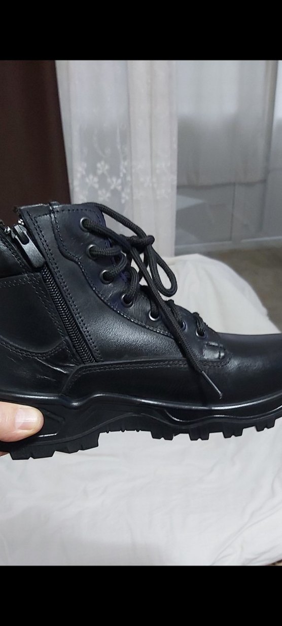 Siyah kauçuk malzemeden yapılmış, bağcıklı ve fermuarlı ve çelik burun erkek iş botu. 38 numara(39 rahat giyer) Gerçek deri bot, kaymaz ve kalın tabanlıdır. Minimalist ve sade tasarıma sahip, günlük kullanım için uygundur.