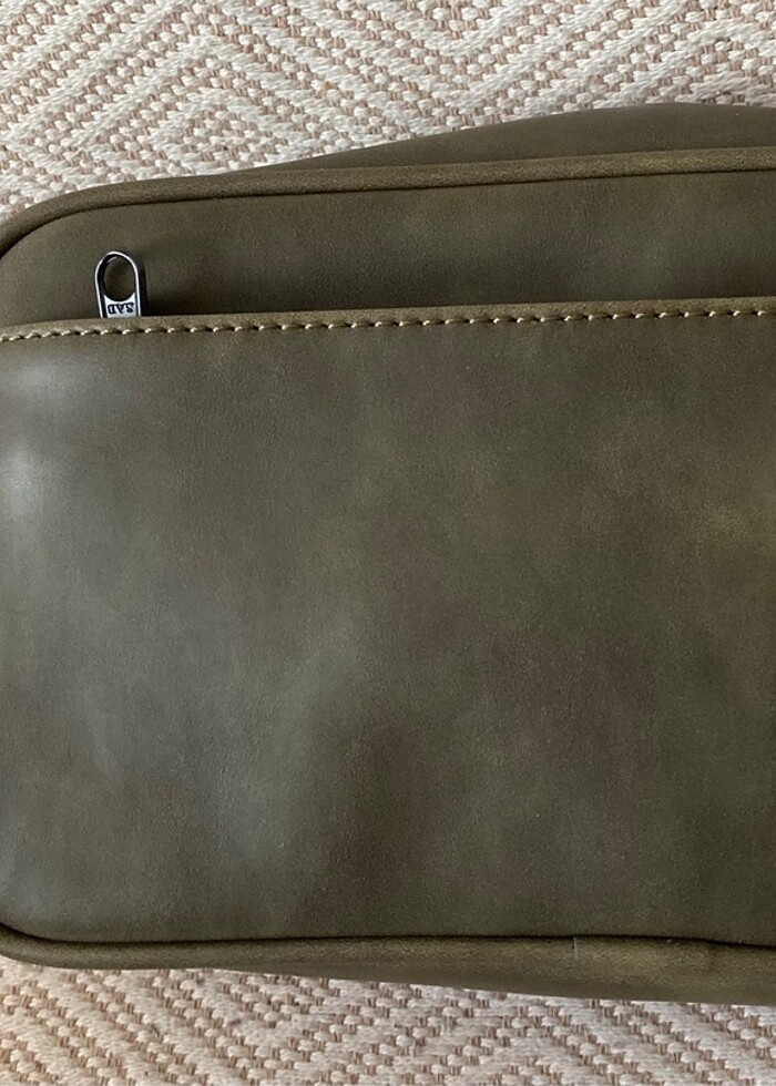 1.kalite sıfır yıkanmış suni yandan el askılı kutu model çanta. Haki yeşil renk. Önden gizli ve ana fermuar cepler mevcut. Ebat 21*13, genişlik 13 cm