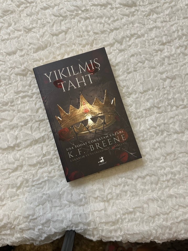 K. F. Breene imzalı "Yıkılmış Taht" romanı, kan lekeli altın bir taç görseliyle dikkat çekiyor.