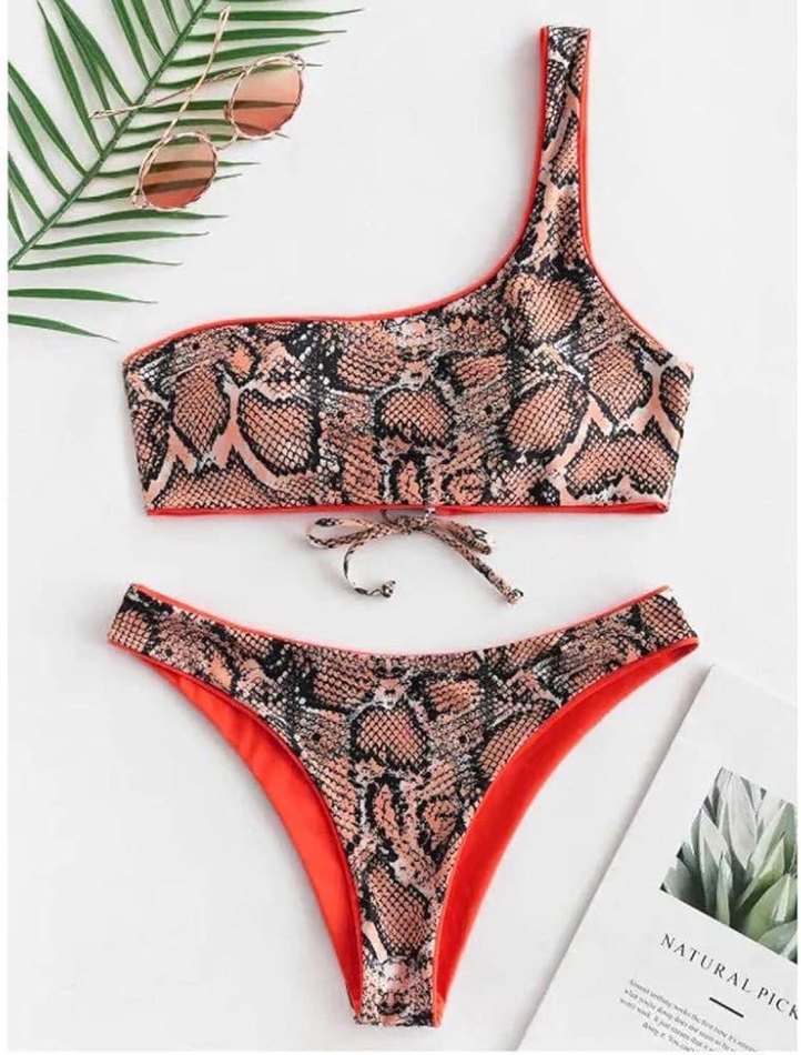 Yılan Derisi Tek Omuz Tanga Brazilian Bikini Takımı