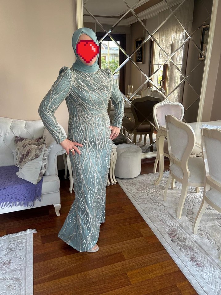 Yılan Desenli acık yeşil Uzun Abiye Elbise 1 kere giyildi