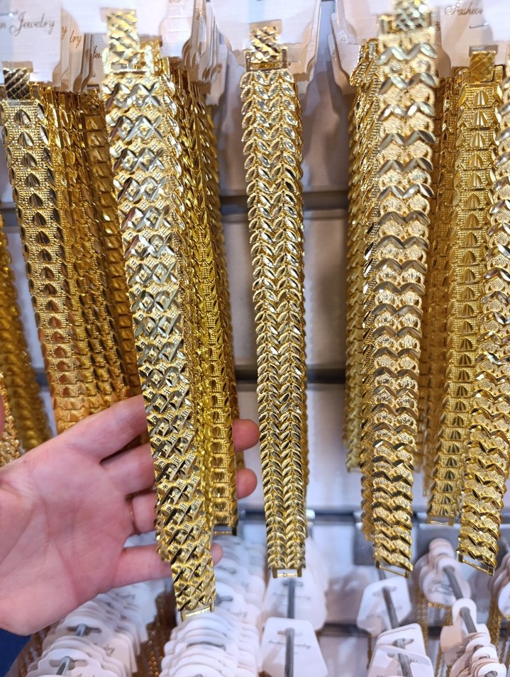 Yılan desenli detaylı altın renk zincir bileklikler, parlak yüzeye sahip. Geleneksel tarzda, gösterişli parti kombinleri için uygun. ✨