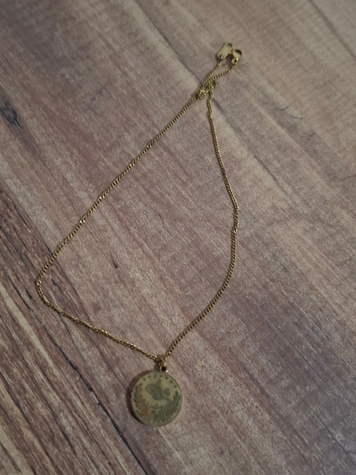 Günlük kullanım için uygun, yılan desenli madalyonlu altın renk zincir kolye, midi uzunlukta ve bohem vintage tarzında.