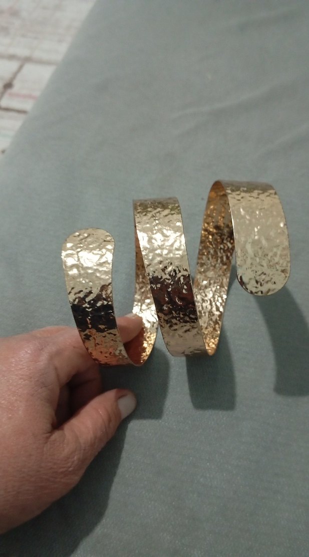 Parlak altın renkli, yılan desenli ve kurdele detaylı bohem tarzda kadın bileklik. Düğün ve minimalist görünüm için uygun.