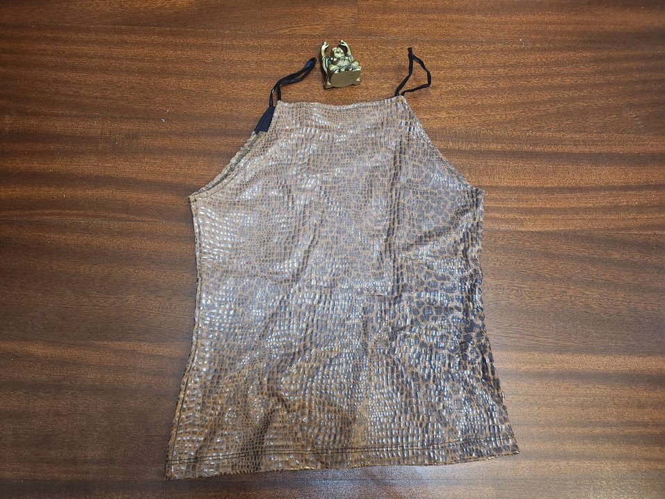 VOLCANO YILAN DESENLİ BLUZ Beden S Renk kahverengi ve hardal/bej Ölçüler 36cm.koltukaltı en 51cm.boy Parlak kahverengi -hardal yılan desenli, askılı bluz, sokak stili ve gündelik dış mekan kullanımı için uygundur. #yılandesenli #bluz #crop #abiye #top