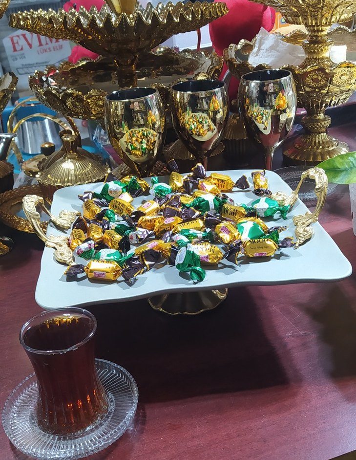 Yılan desenli çok renkli bohem tarzı servis tabağı, altın renkli kulplar ve yükseltilmiş taban ile sunuma uygundur.