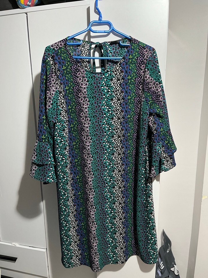 Yılan desenli, pileli askılı kol ve bisiklet yaka detaylı, bol kesim midi tunik. Koyu çok renkli, bohem tarzı için uygundur.