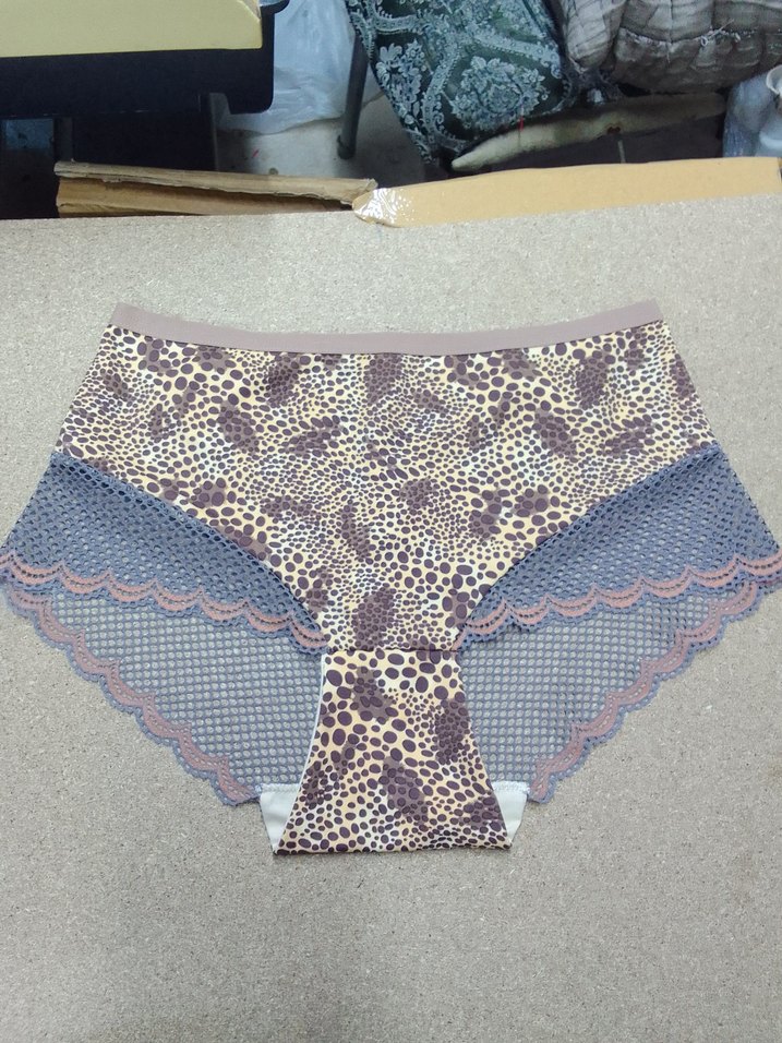 Bej yılan desenli, gri dantelli yanlarıyla kısa mini kadın külot, rahat bohem tarzda.