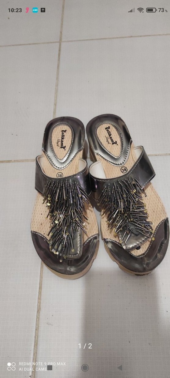 Yılan desenli, kahverengi dolgu topuk kadın terlik. Bohem tarzda, tokalı ve günlük kullanıma uygun.