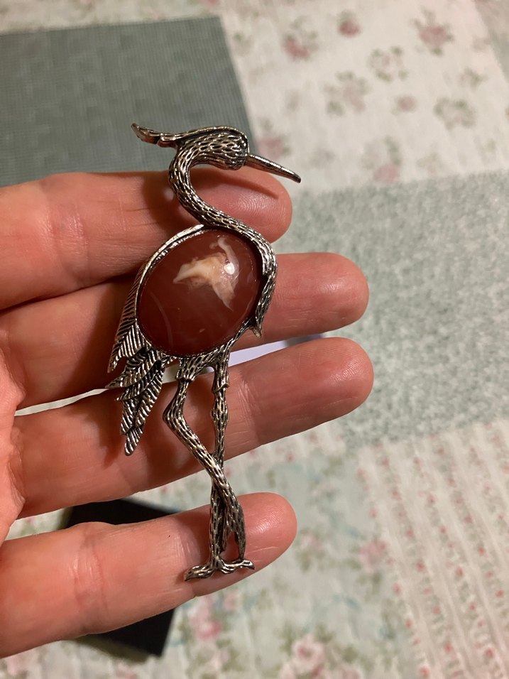Kahverengi boncuk taşlı, yılan desenli metal çerçeveli bohem tarzı broş, günlük kullanıma uygun.