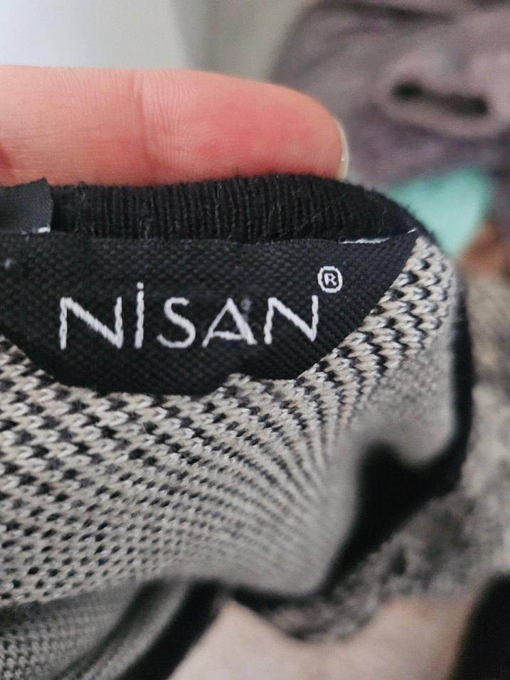 Yılan desenli, çok renkli ve koyu tonlarda kazak "NISAN" marka etiketi ile sıcak eşyalara karşı koruma sağlar.