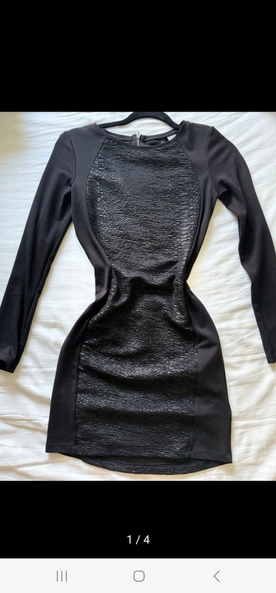 Siyah uzun kollu, yılan desenli drapeli bu dar kesim elbise, gotik ve şık tarzıyla romantik akşamlar için uygundur.
