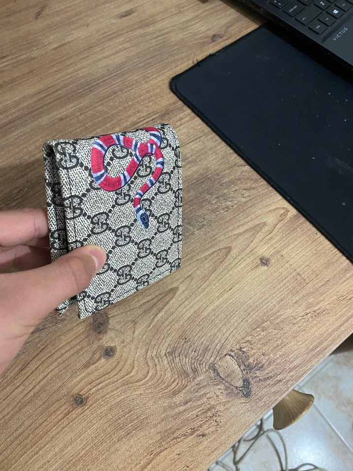 Yılan desenli, gri renkte, Paris sokak modası tarzında GUCCI Marka erkek cüzdanı.