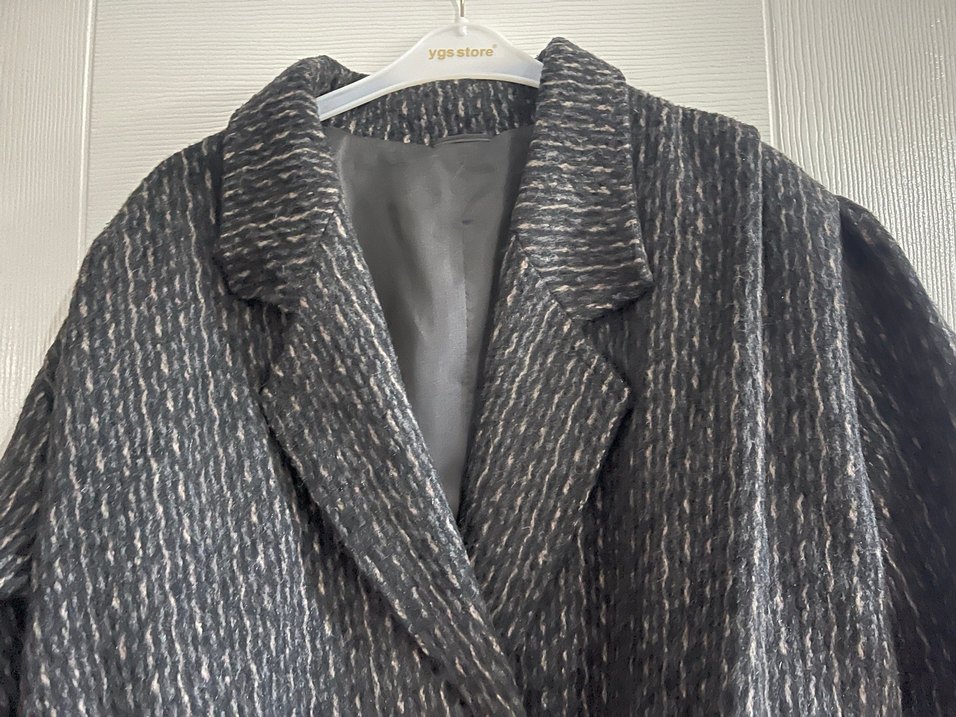 Yılan desenli, kürk detaylı gri kadın uzun kaban. Sentetik kumaştan, regular fit ve uzun kolludur. Ofis ve sokak modasına uygun, Paris tarzında. Kolları karpuz kol detaylıdır keçe kumaş  türündedir Ürün yurtdışından gelmiştir