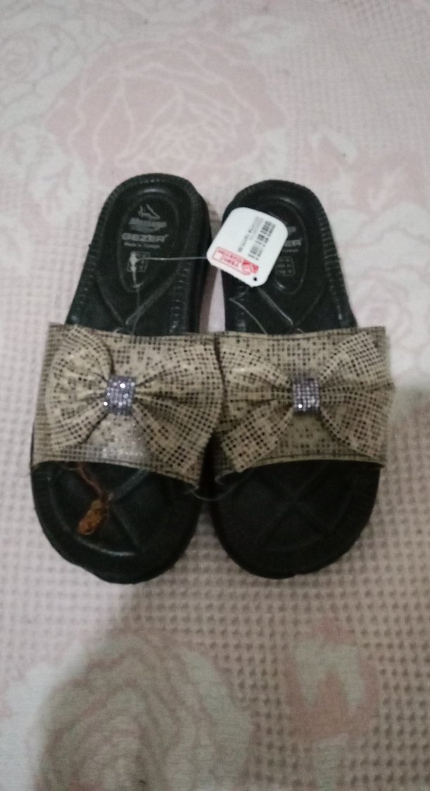Kahverengi yılan desenli, fiyonk detaylı, kauçuk malzemeden yapılmış kadın terlik, günlük kullanım için uygundur.