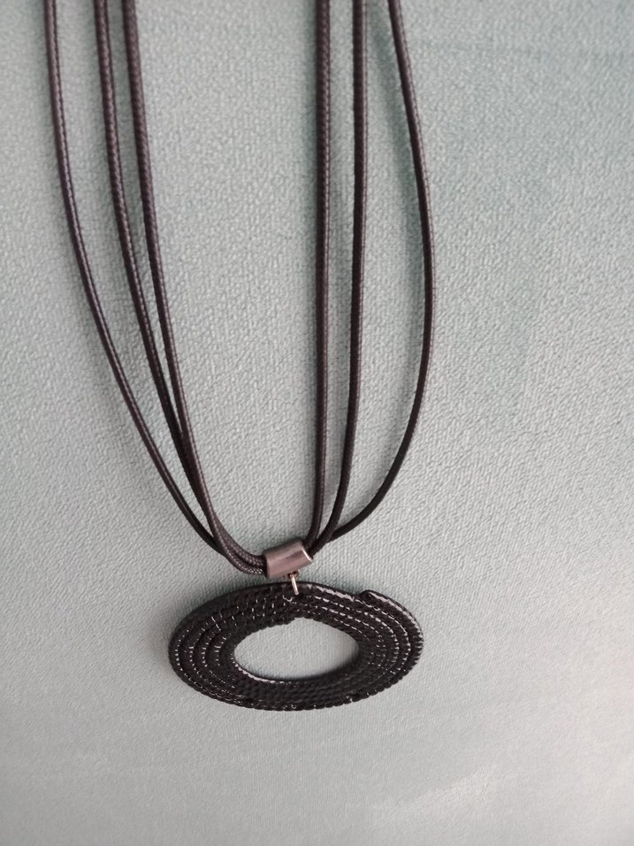 Uzun uzunlukta, kahverengi yılan desenli, zincir detaylı kadın kolyesi, minimalist ve çağdaş tarzlar için uygun.