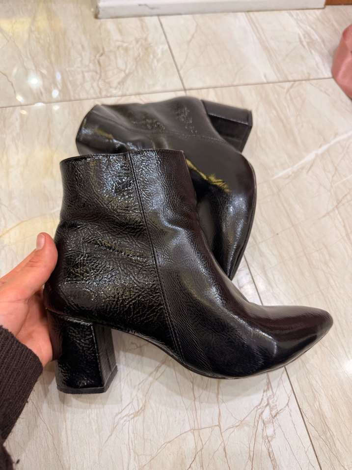 Koyu kahverengi deri, yılan desenli ve kemerli blok topuklu bot. Trendy casual ve gotik tarzlara uygundur. Butikten alindi