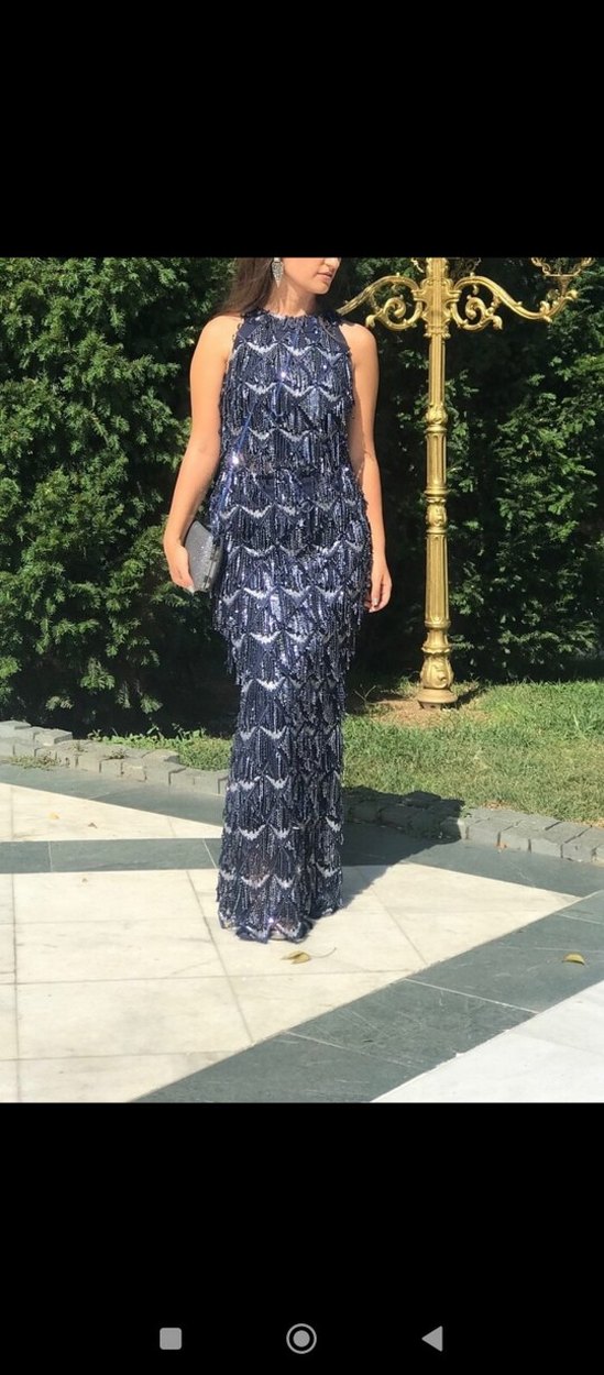 Yılan Desenli Lacivert Uzun Abiye Elbise