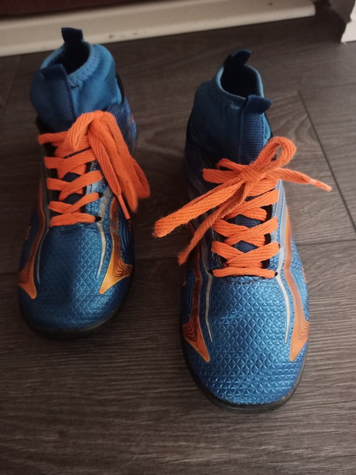 Erkekler için mavi yılan desenli spor ayakkabı, turuncu bağcıklı kauçuk tabanlı ve sokak stili için uygun. ⚽ krampon 35 numara