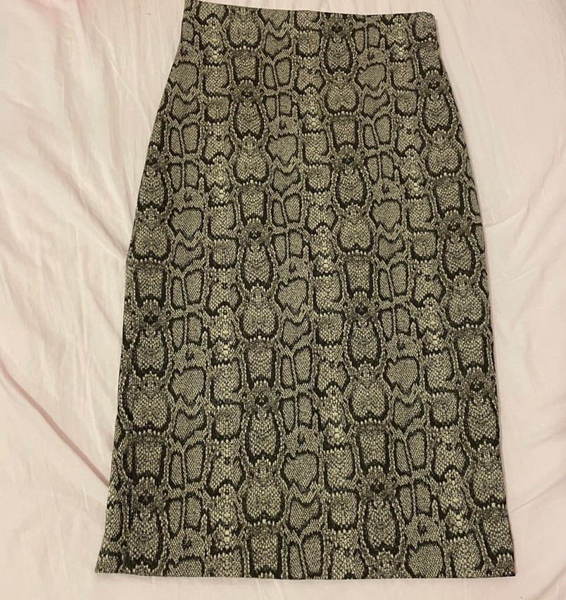Yılan desenli, arkasında ufak bir yırtmacı var. 1 kere giyildi.