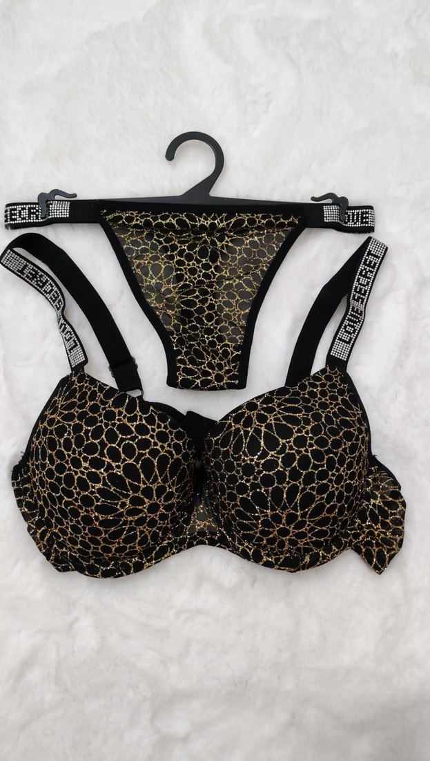 85 b siyah sarı simli takım yarım tanga