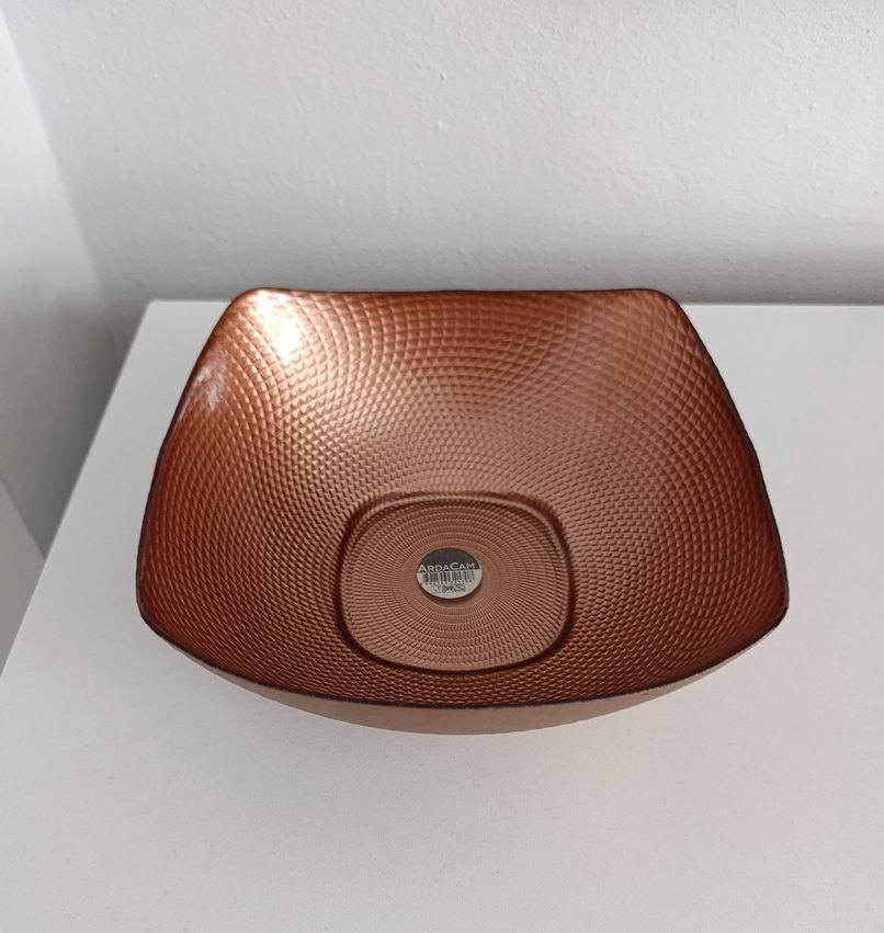Yılan desenli, parlak kahverengi çağdaş büyük kase sofranıza benzersiz bir dokunuş katıyor.Yenin sıfır üründür etiketi üstündedir. Deforme yoktur