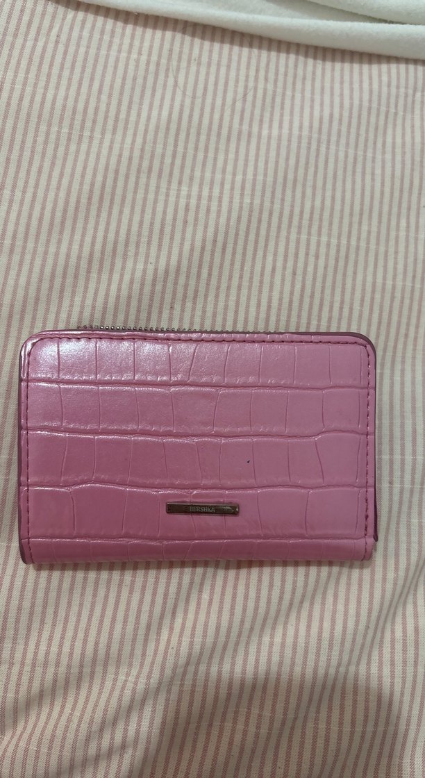Pastel pembe yılan desenli deri kadın cüzdan, fermuarlı kapama ile günlük kullanıma uygun şık bir tasarıma sahiptir.