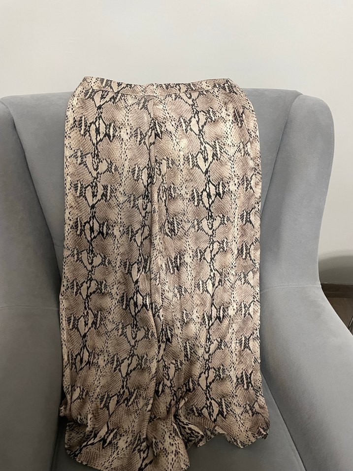 Saten,yılan desenli, Dökümlü tasarımıyla rahat ve bohem bir tarz sunar.