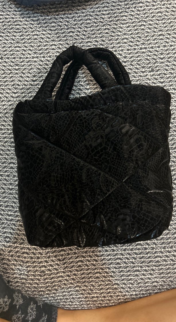 Yılan desenli siyah kadın çanta, sentetik kumaştan ve fermuarlı. Gotik tarzıyla günlük kullanıma uygun.