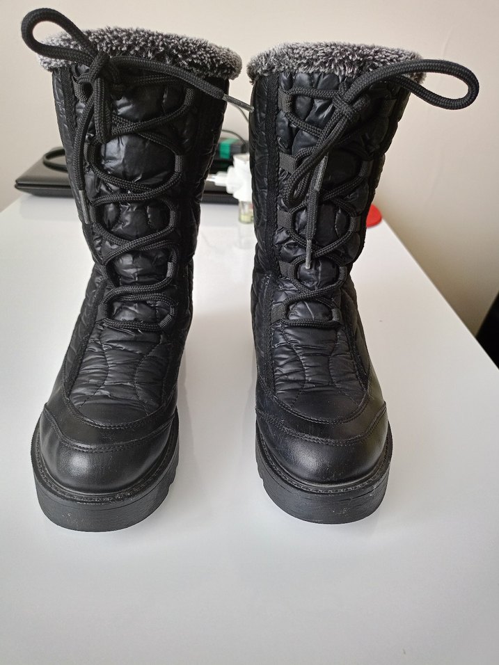 Yılan desenli siyah kadın botlar, yüksek topuklu ve tokalı detaylara sahip. Kauçuk malzemeden yapılmış, gotik ve rock punk tarzını yansıtıyor.