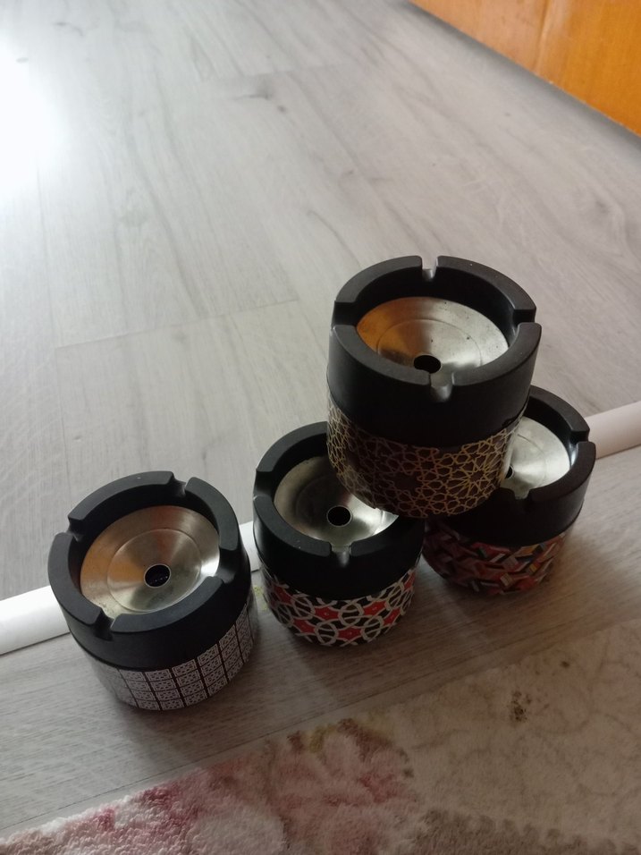 Yılan desenli, siyah renkte, paslanmaz çelik iç kısımlı küllük seti, sağlam ve geleneksel tarzda. tane olarak satilir