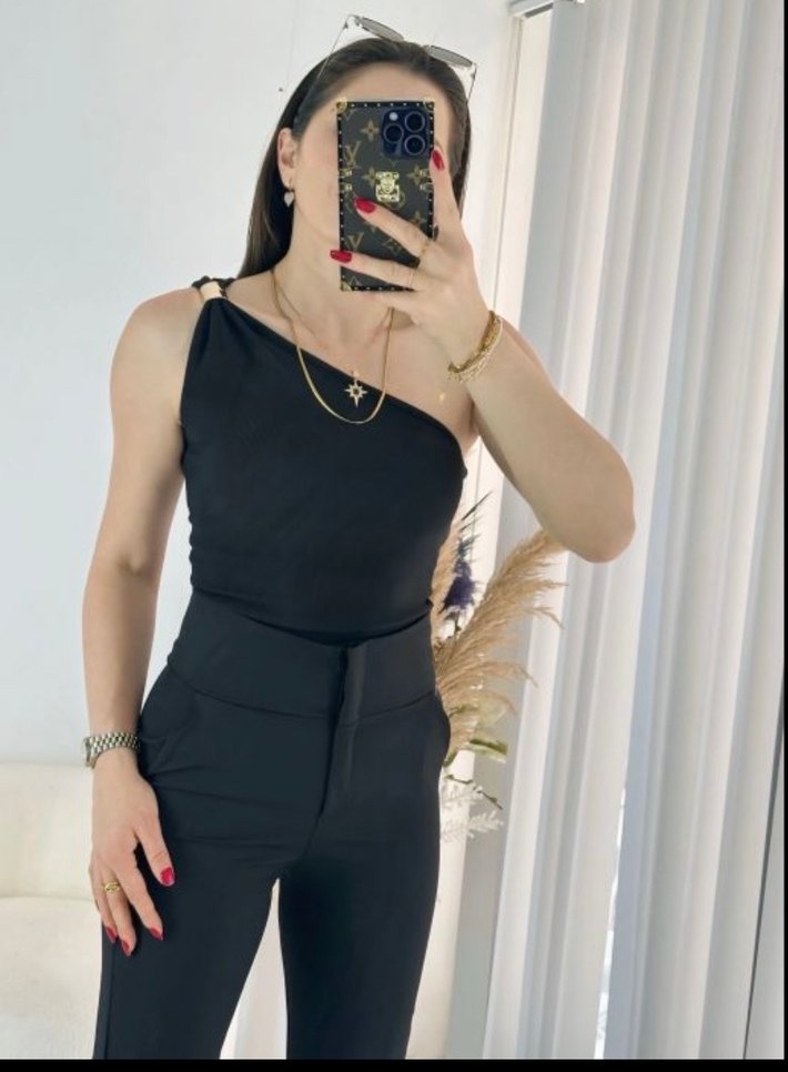 Yılan desenli, straplez, mini uzunlukta, siyah renkli, vücuda oturan ve ipeksi dokulu bluz.