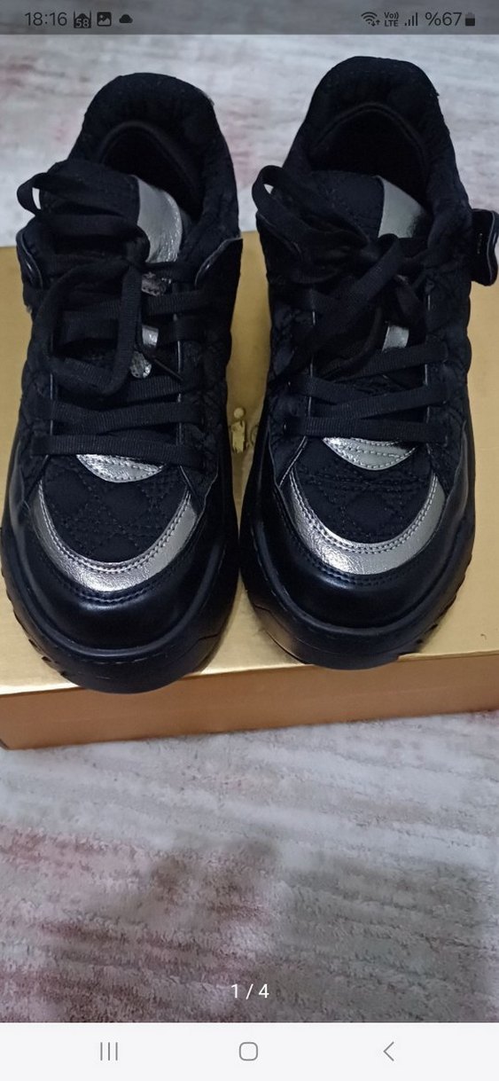 Kadınlar için siyah yılan desenli, bağcıklı ve platform tabanlı kauçuk spor ayakkabılar, athleisure ve sokak modası için uygun.hic kullanmadım yenidir