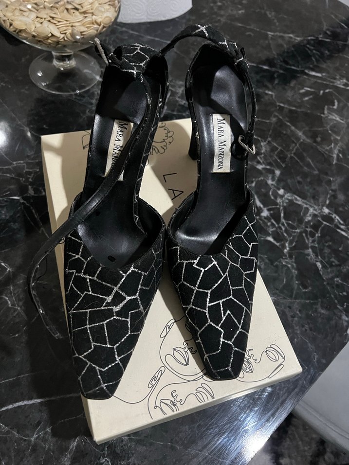 Yılan desenli siyah stiletto topuklu, tokalı kayışlı kauçuk malzemeden yapılmış kadın ayakkabı. Romantik bir gece için gotik ve avangart tarzda.