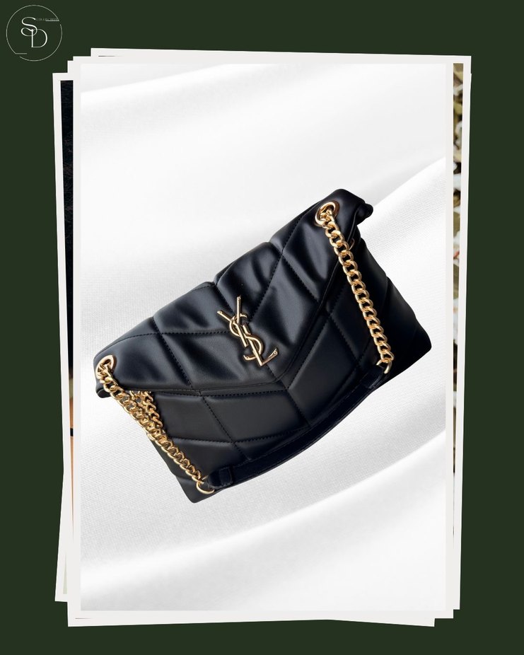 Parlak yılan desenli siyah deri çanta, altın zincir detaylarıyla cesur sokak stili için uygun.