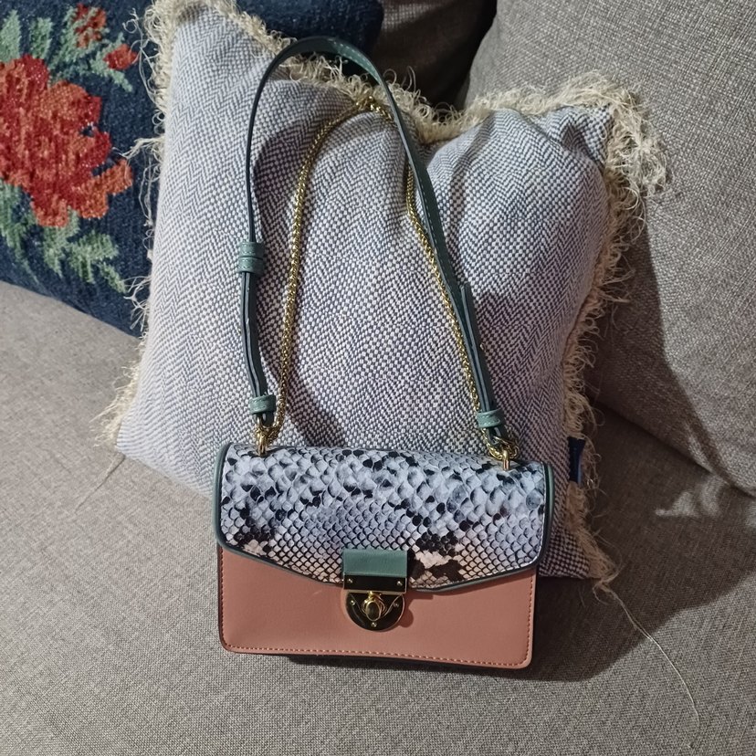 Çok az kullanılmış süper durumda hiçbir sorunu yoktur Yılan desenli kapak, tokalı kapanış ve pastel renkli