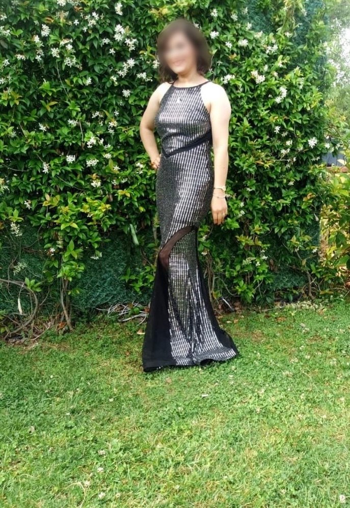 Yılan desenli,halter yaka ve ince askılı, uzun ve vücuda oturan gri abiye elbisedir. Avant-garde parti tarzı için uygundur.Özel dikim bir elbisedir bir kere düğün için giyilmiştir.